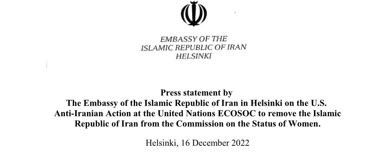 Press statement by The Embassy of the Islamic Republic of Iran in Helsinki on the U.S. Anti-Iranian Action at the United Nations ECOSOC to remove t
