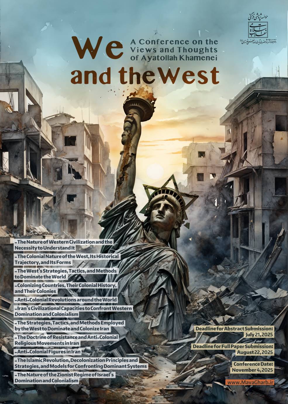 The Islamic Revolution Cultural and Research Institute is organizing the international scientific conference "We and the West." The conference aims to thoroughly examine the perspectives and thoughts of His Eminence Grand Ayatollah Seyyed Ali Khamenei (May God Protect Him) on the relationship between Islamic Civilization and Western Civilization.